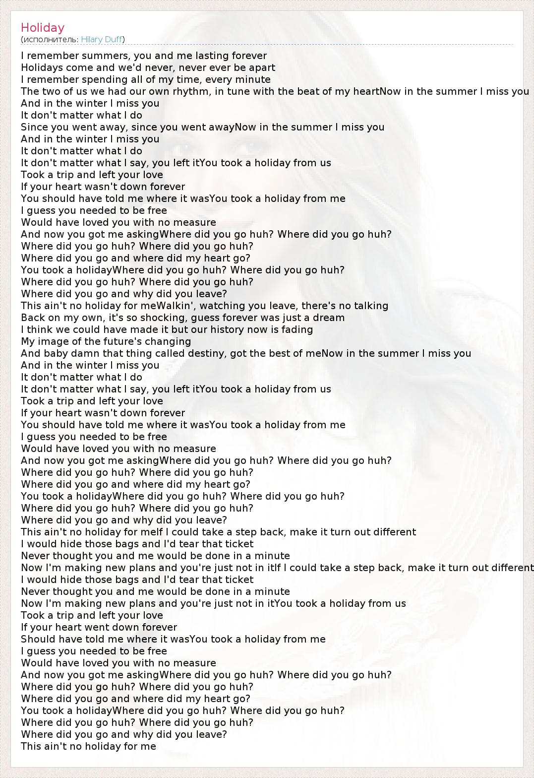 А как ты думаешь, о чем песня "Holiday" ?