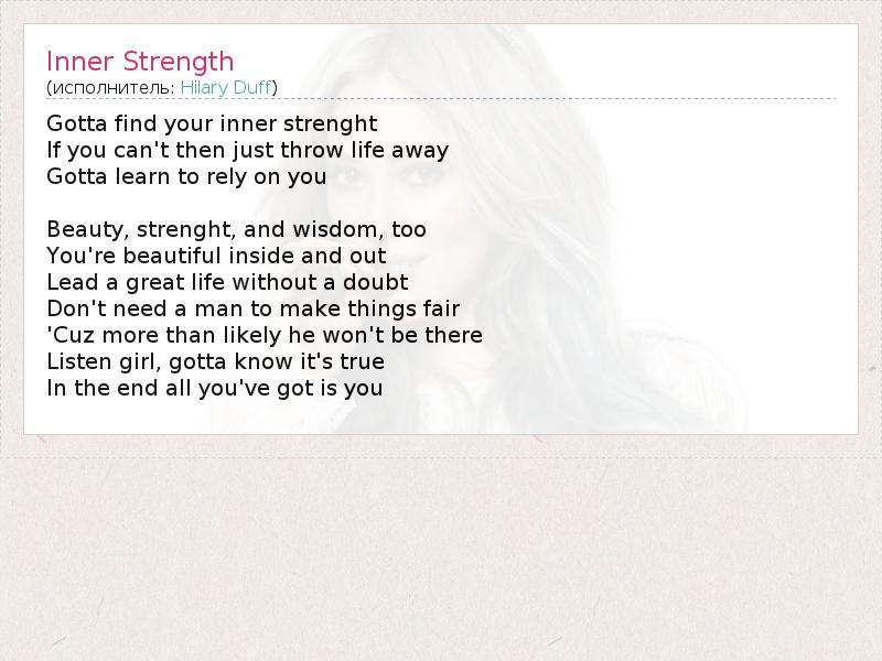 А как ты думаешь, о чем песня "Inner Strength" ?