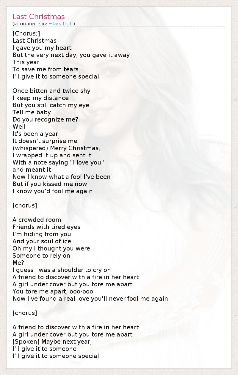 А как ты думаешь, о чем песня "Last Christmas" ?