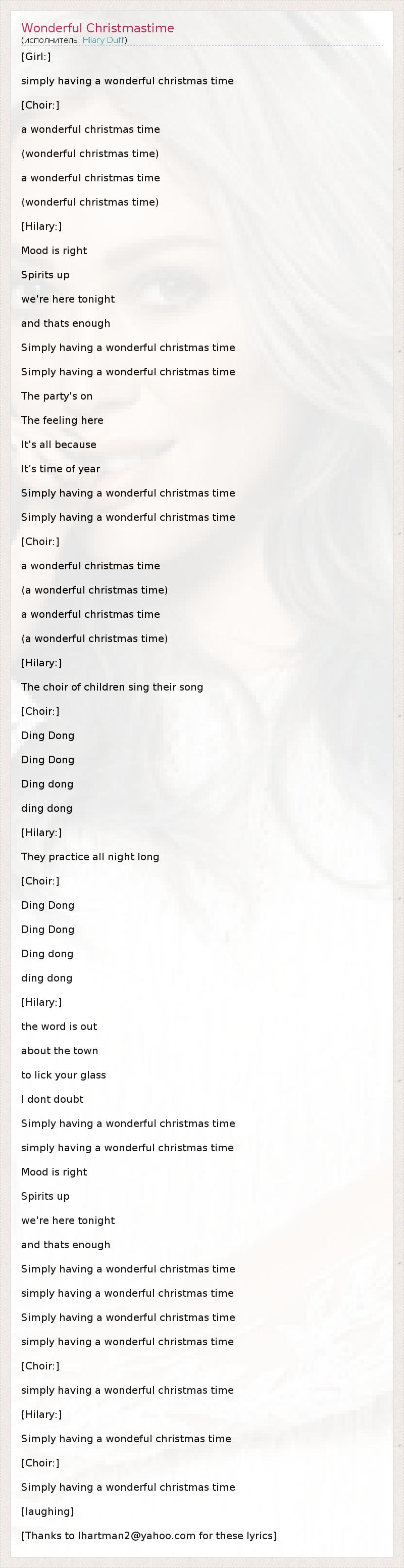 ГлавнаяИсполнителиHilary DuffWonderful Christmastime