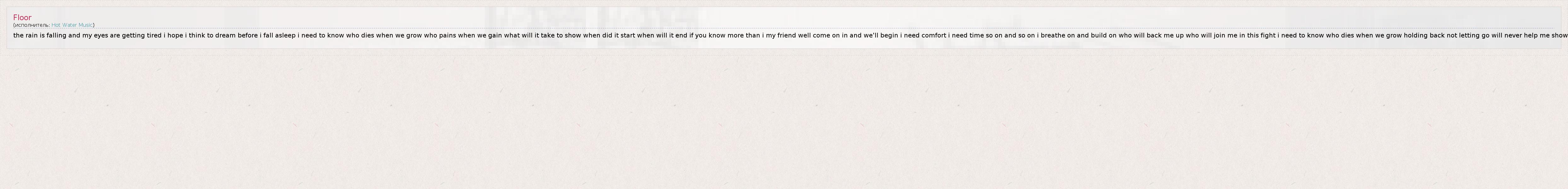 the rain is falling and my eyes are getting tired i hope i think to dream before i fall asleep i need to know who dies when we grow who pains when we gain what will it take to show when did it start when will it end if you know more than i my friend well come on in and we'll begin i need comfort i need time so on and so on i breathe on and build on who will back me up who will join me in this fight i need to know who dies when we grow holding back not letting go will never help me show