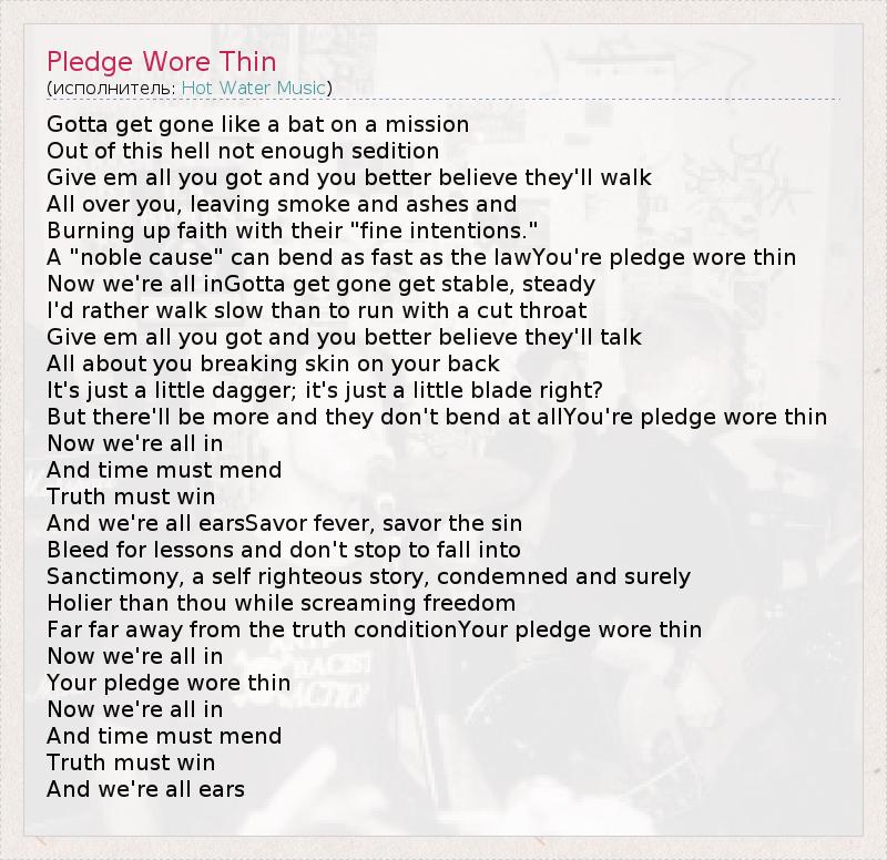 А как ты думаешь, о чем песня "Pledge Wore Thin" ?