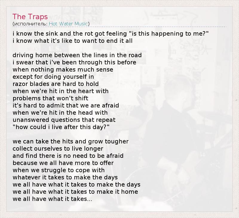 А как ты думаешь, о чем песня "The Traps" ?