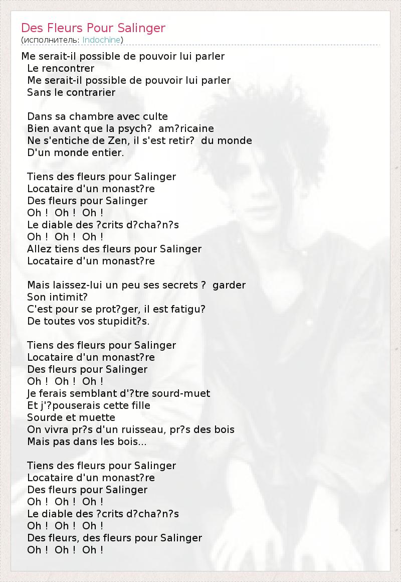 А как ты думаешь, о чем песня "Des Fleurs Pour Salinger" ?