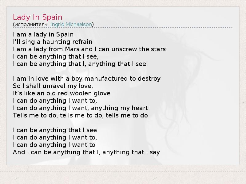 А как ты думаешь, о чем песня "Lady In Spain" ?