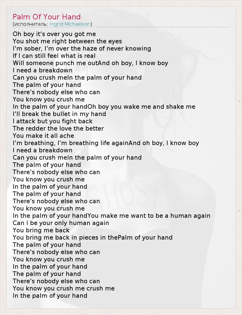 А как ты думаешь, о чем песня "Palm Of Your Hand" ?