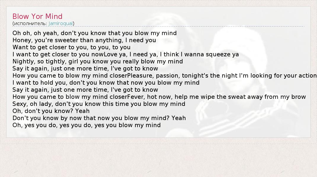 А как ты думаешь, о чем песня "Blow Yor Mind" ?