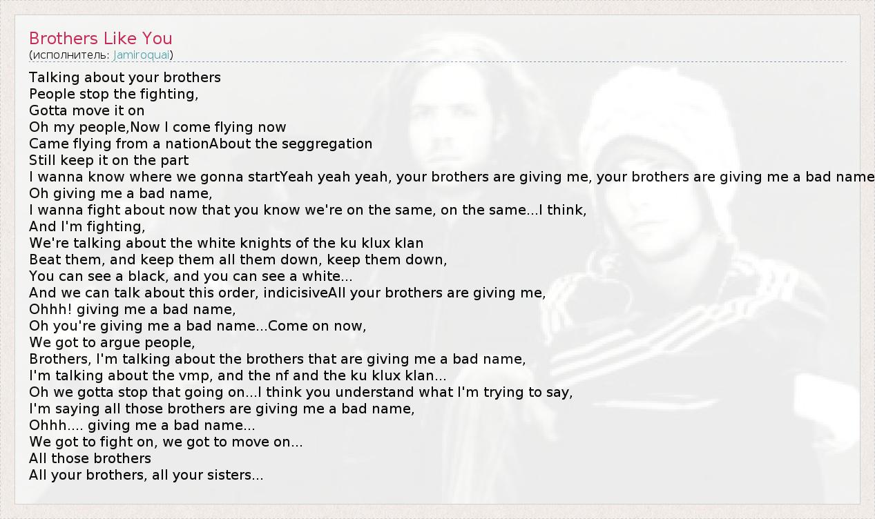 А как ты думаешь, о чем песня "Brothers Like You" ?