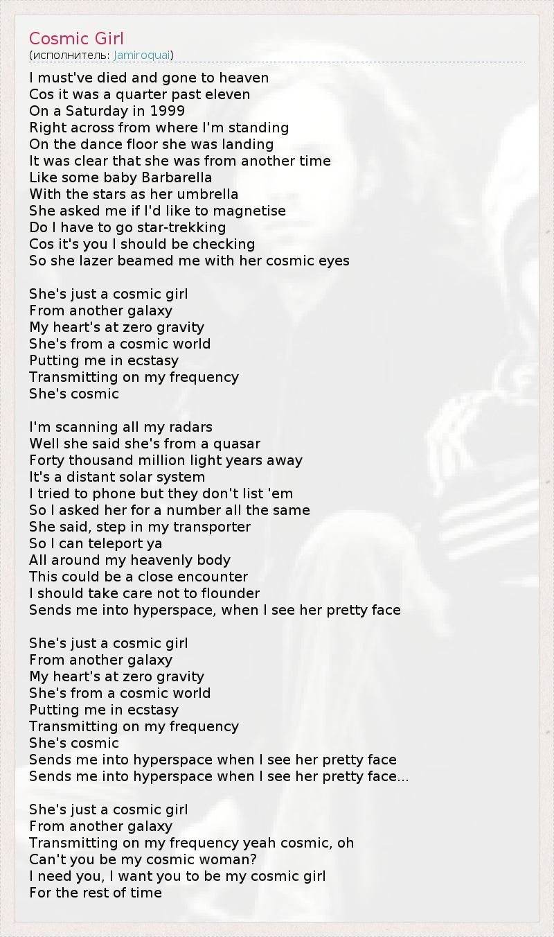 А как ты думаешь, о чем песня "Cosmic Girl" ?