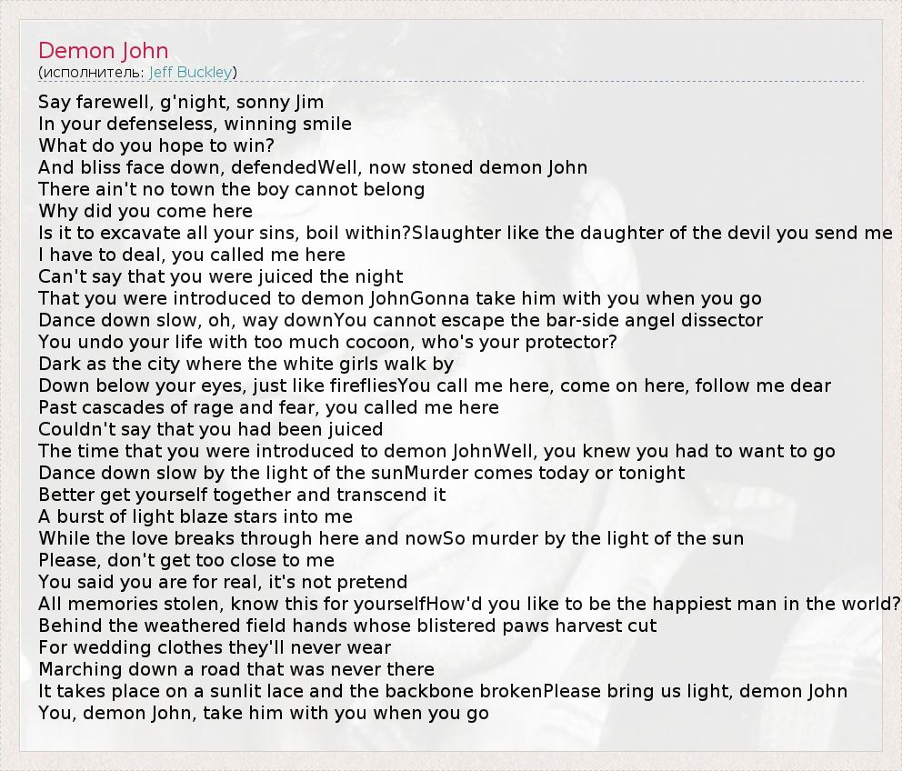 It takes place on a sunlit lace and the backbone brokenPlease bring us light, demon John