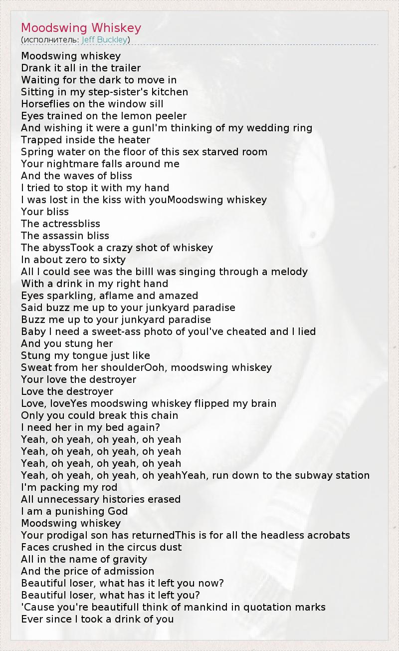 А как ты думаешь, о чем песня "Moodswing Whiskey" ?