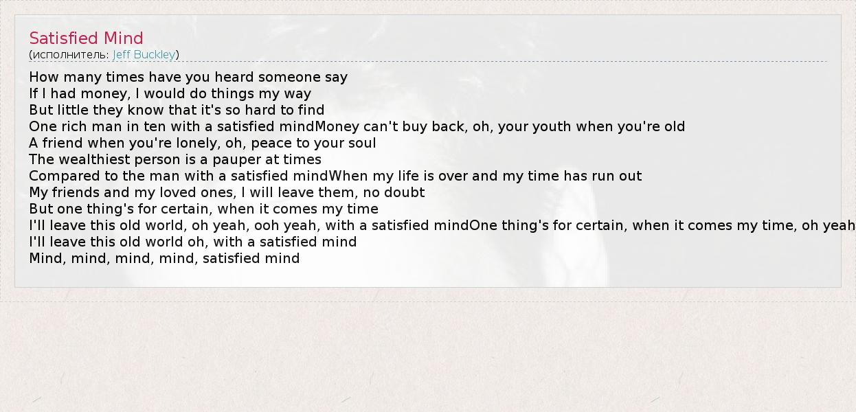 А как ты думаешь, о чем песня "Satisfied Mind" ?