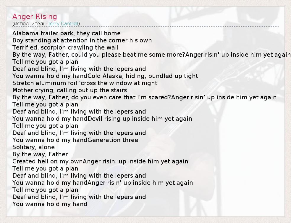 А как ты думаешь, о чем песня "Anger Rising" ?