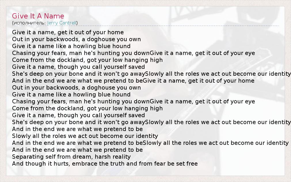 А как ты думаешь, о чем песня "Give It A Name" ?