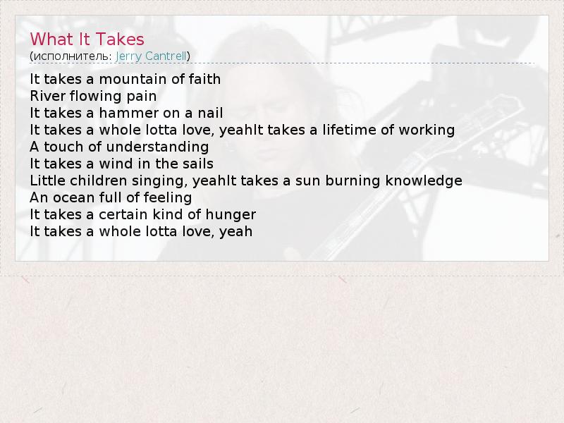 Это интересно:Вокал и мелодичная музыка Джерри до сих пор влияют на современный рок, и многие молодые команды «заимствуют» их, не спрашивая об этом у самого музыканта. Кантрелл сочинил много чудеснейших песен Alice In Chains, такие как «Rooster», «No Excuses», «Down In A Hole», «Would?», которые стали гимнами поколения «Х».Большая часть детства Джерри прошла без отца, исполнявшего свой воинский долг... продолжение