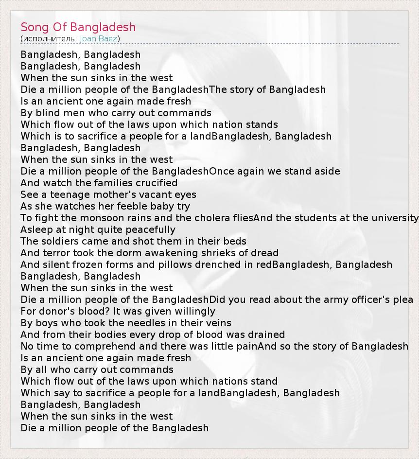 А как ты думаешь, о чем песня "Song Of Bangladesh" ?