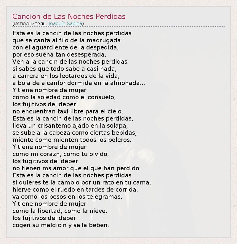 ГлавнаяИсполнителиJoaquín SabinaCancion de Las Noches Perdidas