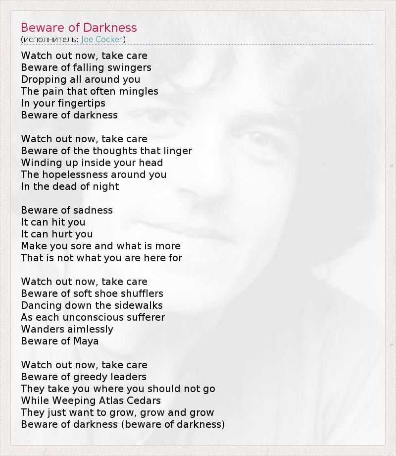 А как ты думаешь, о чем песня "Beware of Darkness" ?