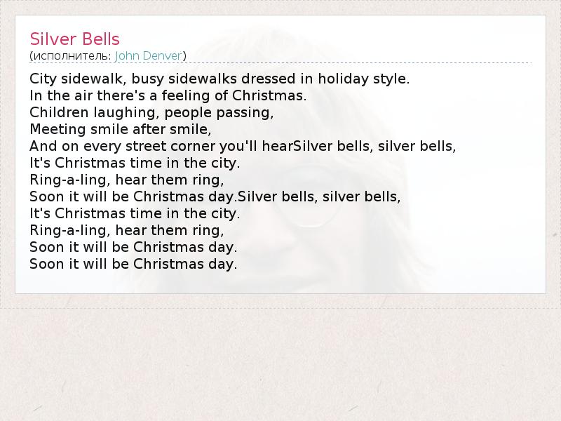 А как ты думаешь, о чем песня "Silver Bells" ?