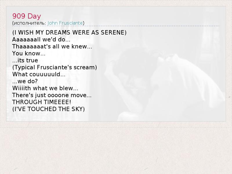 А как ты думаешь, о чем песня "909 Day" ?