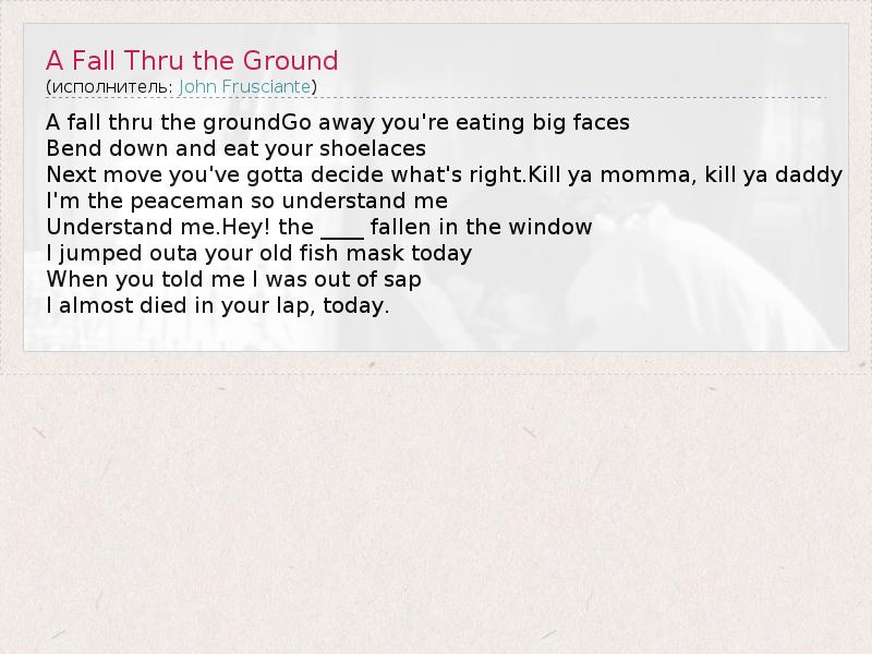 А как ты думаешь, о чем песня "A Fall Thru the Ground" ?