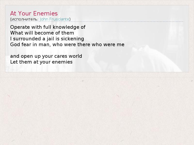 А как ты думаешь, о чем песня "At Your Enemies" ?