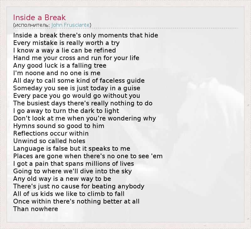 А как ты думаешь, о чем песня "Inside a Break" ?