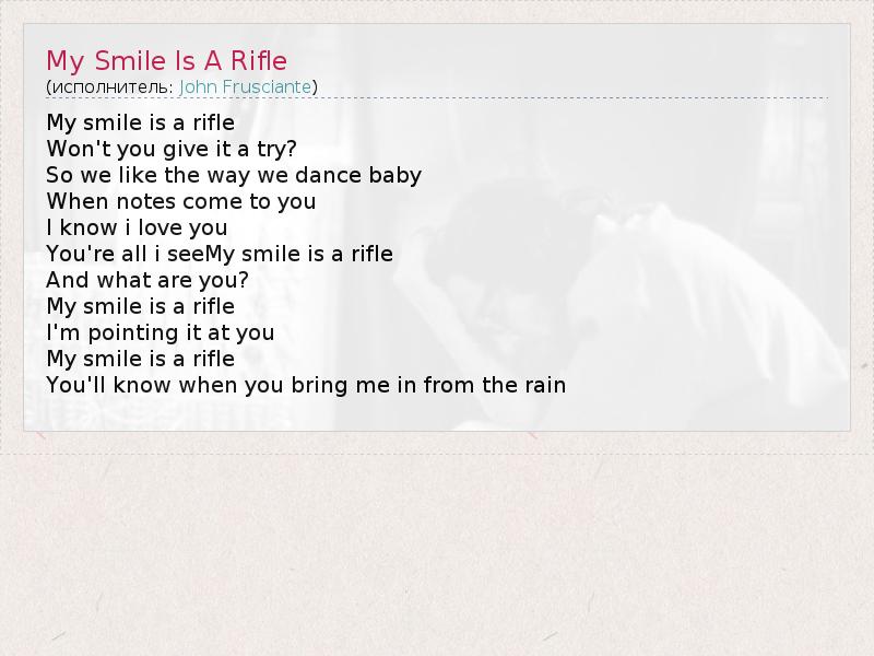А как ты думаешь, о чем песня "My Smile Is A Rifle" ?
