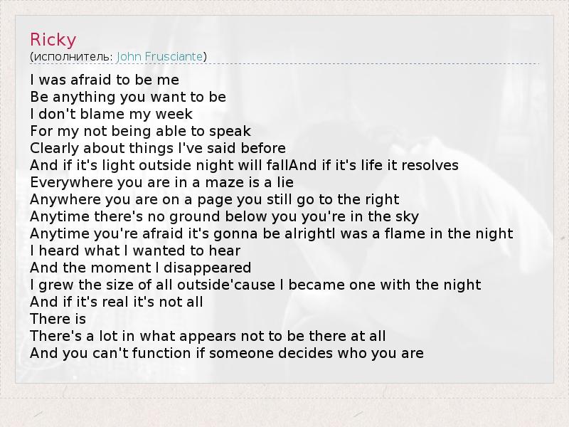 Anytime you're afraid it's gonna be alrightI was a flame in the night