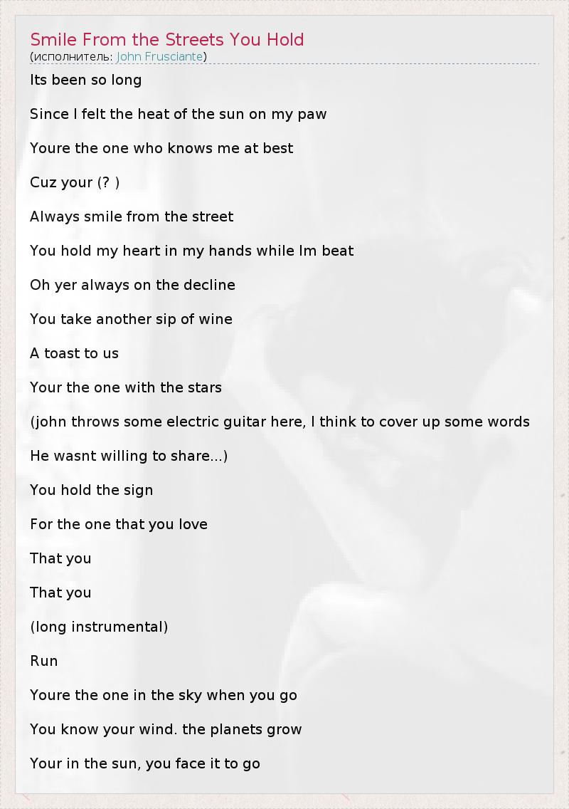 А как ты думаешь, о чем песня "Smile From the Streets You Hold" ?