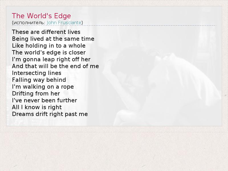 А как ты думаешь, о чем песня "The World's Edge" ?