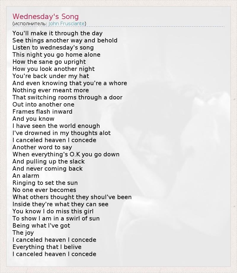 А как ты думаешь, о чем песня "Wednesday's Song" ?