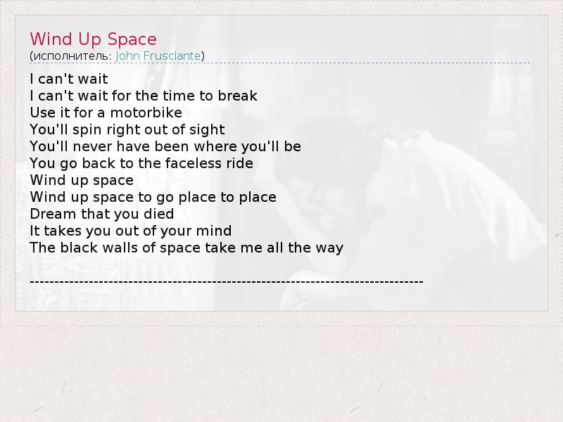 А как ты думаешь, о чем песня "Wind Up Space" ?