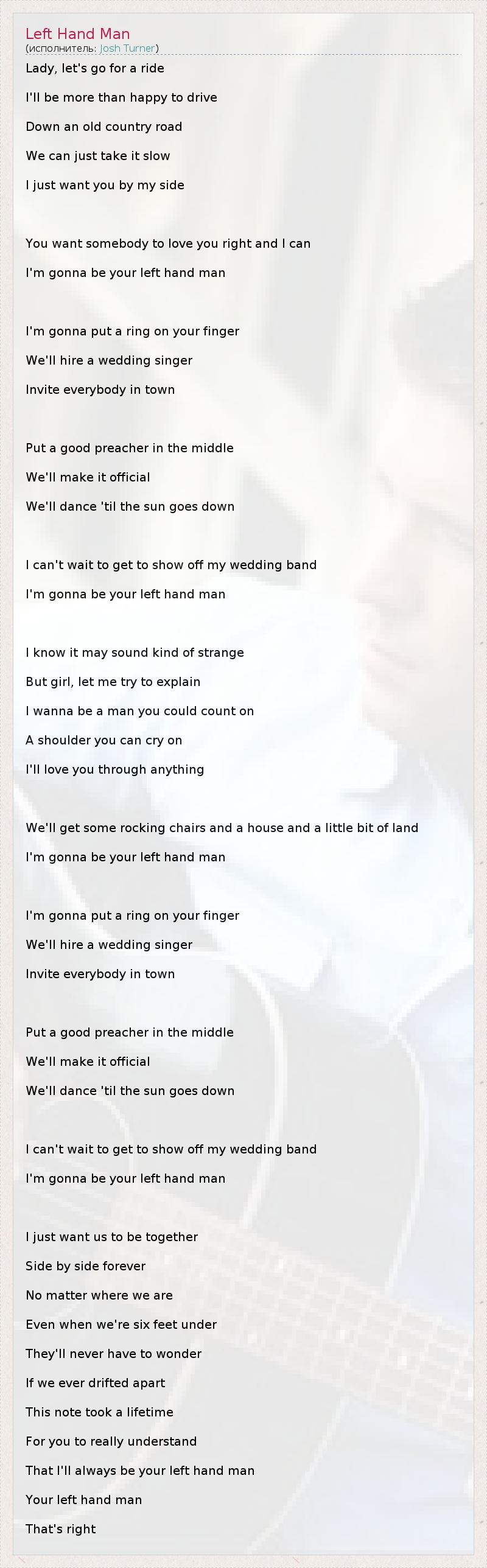 А как ты думаешь, о чем песня "Left Hand Man" ?