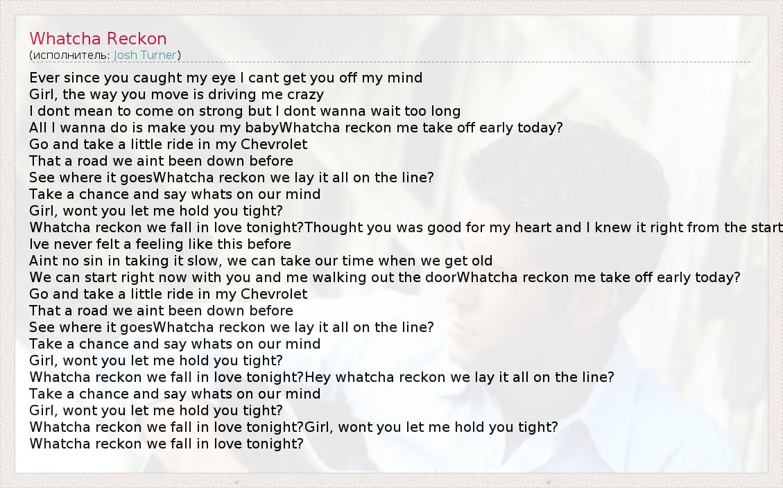 А как ты думаешь, о чем песня "Whatcha Reckon" ?