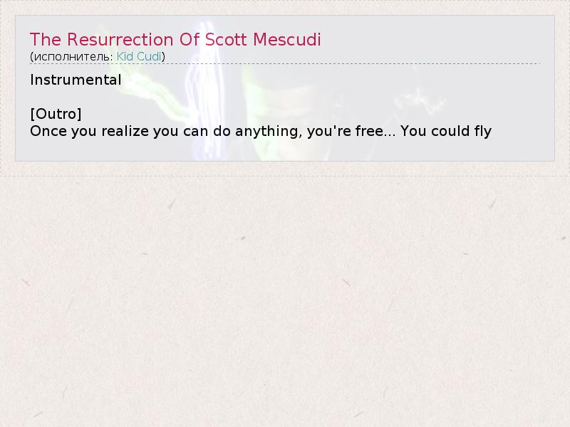 А как ты думаешь, о чем песня "The Resurrection Of Scott Mescudi" ?