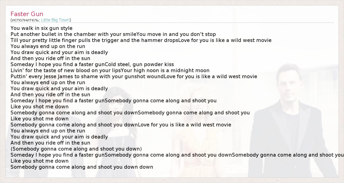 А как ты думаешь, о чем песня "Faster Gun" ?