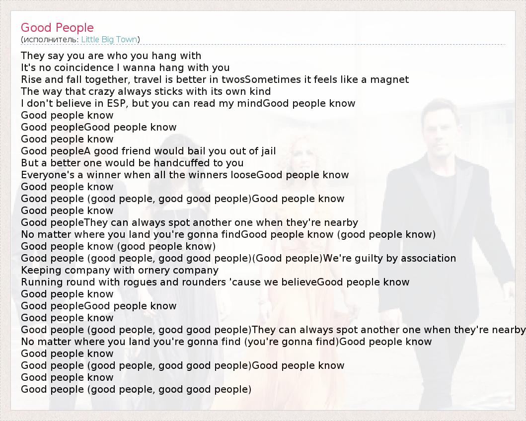 Good people (good people, good good people)They can always spot another one when they're nearby