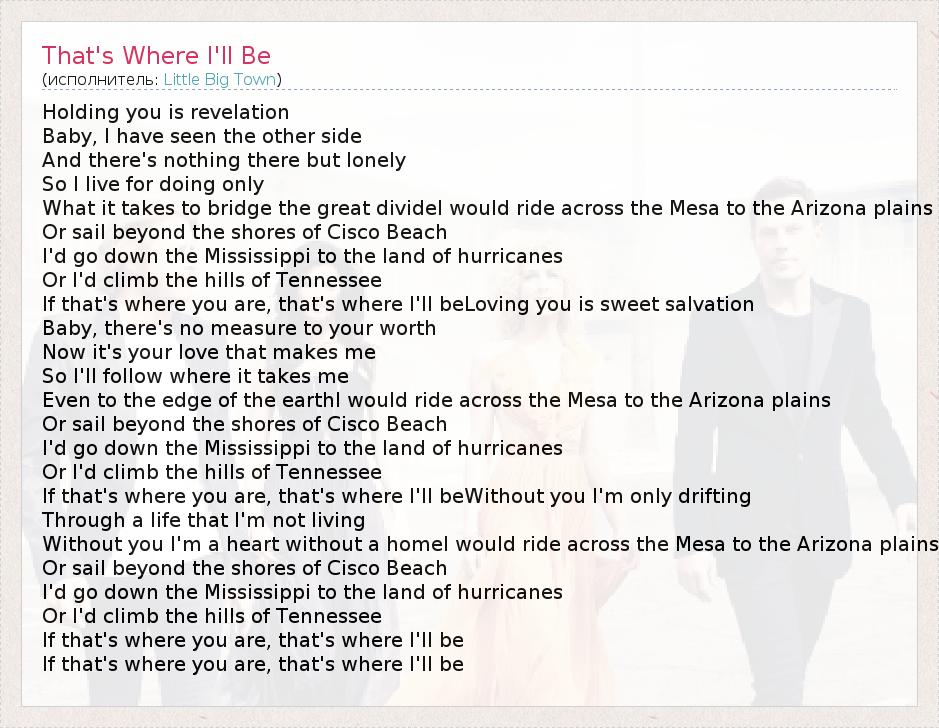А как ты думаешь, о чем песня "That's Where I'll Be" ?