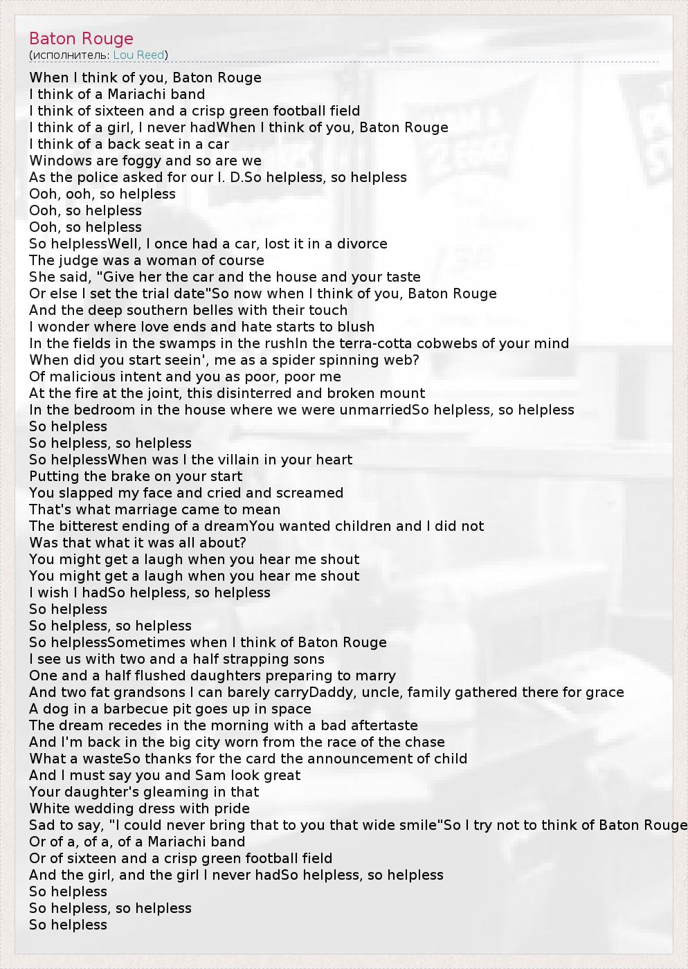 А как ты думаешь, о чем песня "Baton Rouge" ?