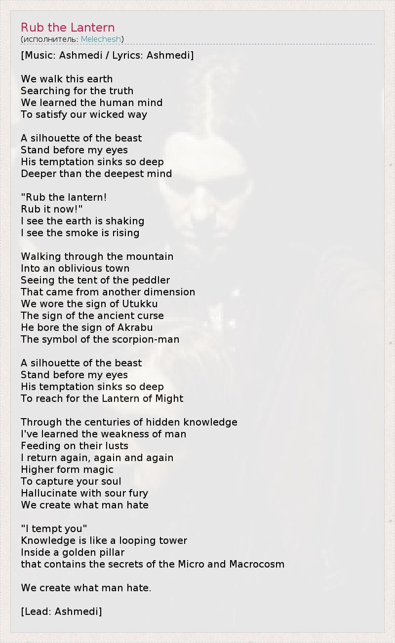 А как ты думаешь, о чем песня "Rub the Lantern" ?