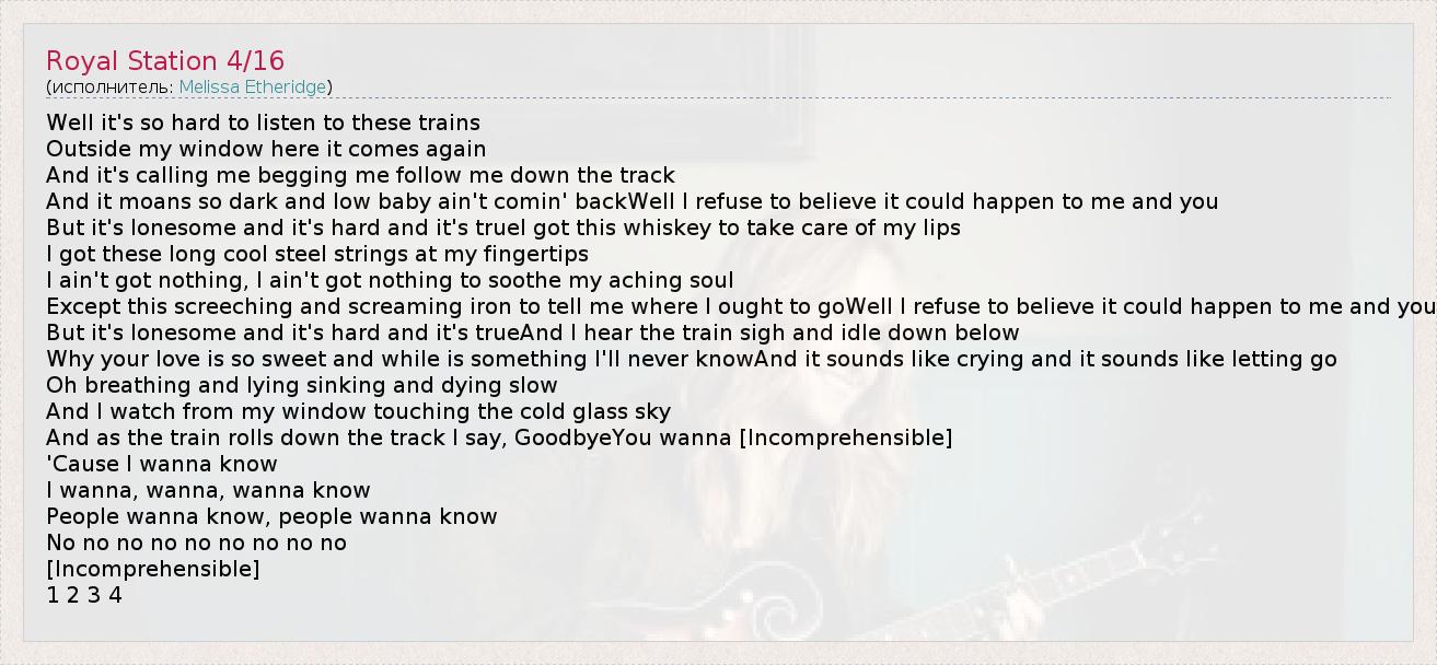 А как ты думаешь, о чем песня "Royal Station 4/16" ?
