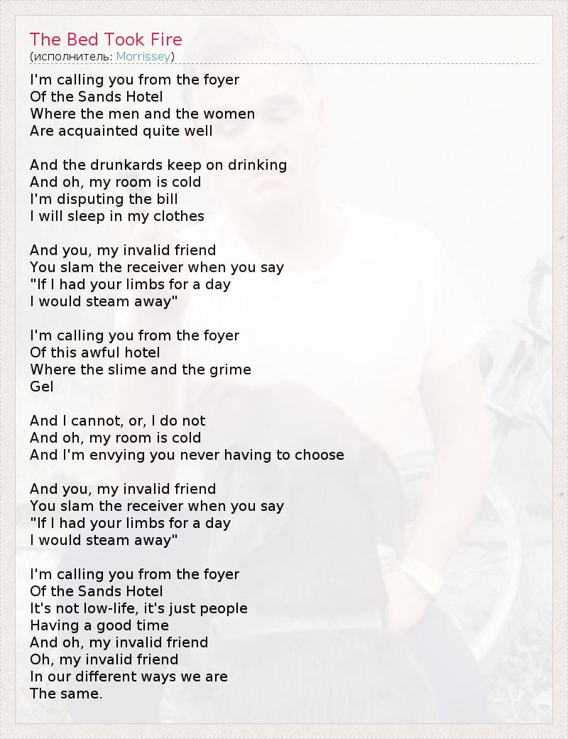 А как ты думаешь, о чем песня "The Bed Took Fire" ?