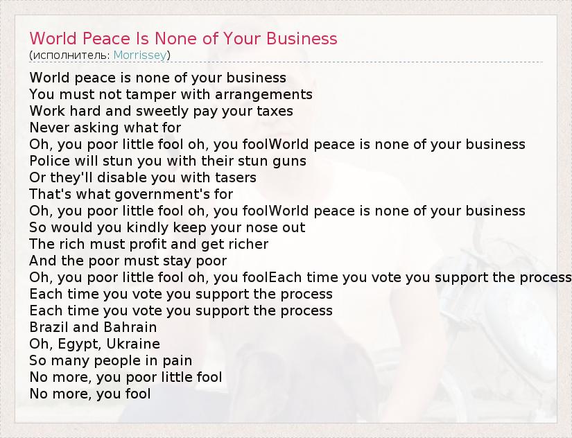 А как ты думаешь, о чем песня "World Peace Is None of Your Business" ?