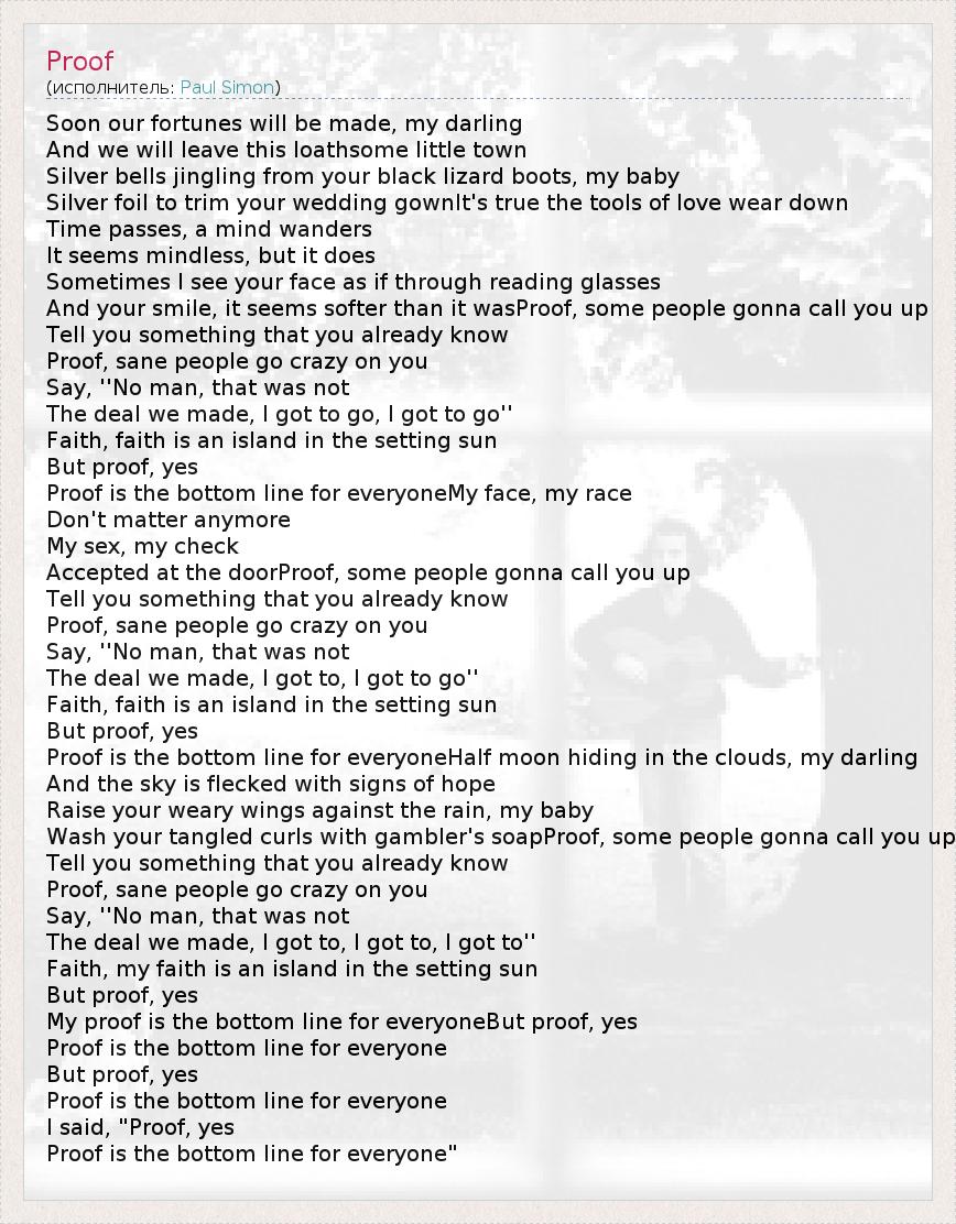 Это интересно:Пол Фредерик Саймон (англ. Paul Frederic Simon; 13 октября 1941, Нью-Джерси) — рок-музыкант, поэт и композитор, обладатель трёх премий «Грэмми» в номинации «лучший альбом года» (1970, 1975, 1986). Биография:1957—1972Саймон родился в еврейской семье, вырос в Квинсе, учился в Колумбийском университете. Зимой 1957—1958 годов и в 1964—1970 он записывался и выступал в дуэте со своим школьным товарищем Артом Гарфанкелом... продолжение