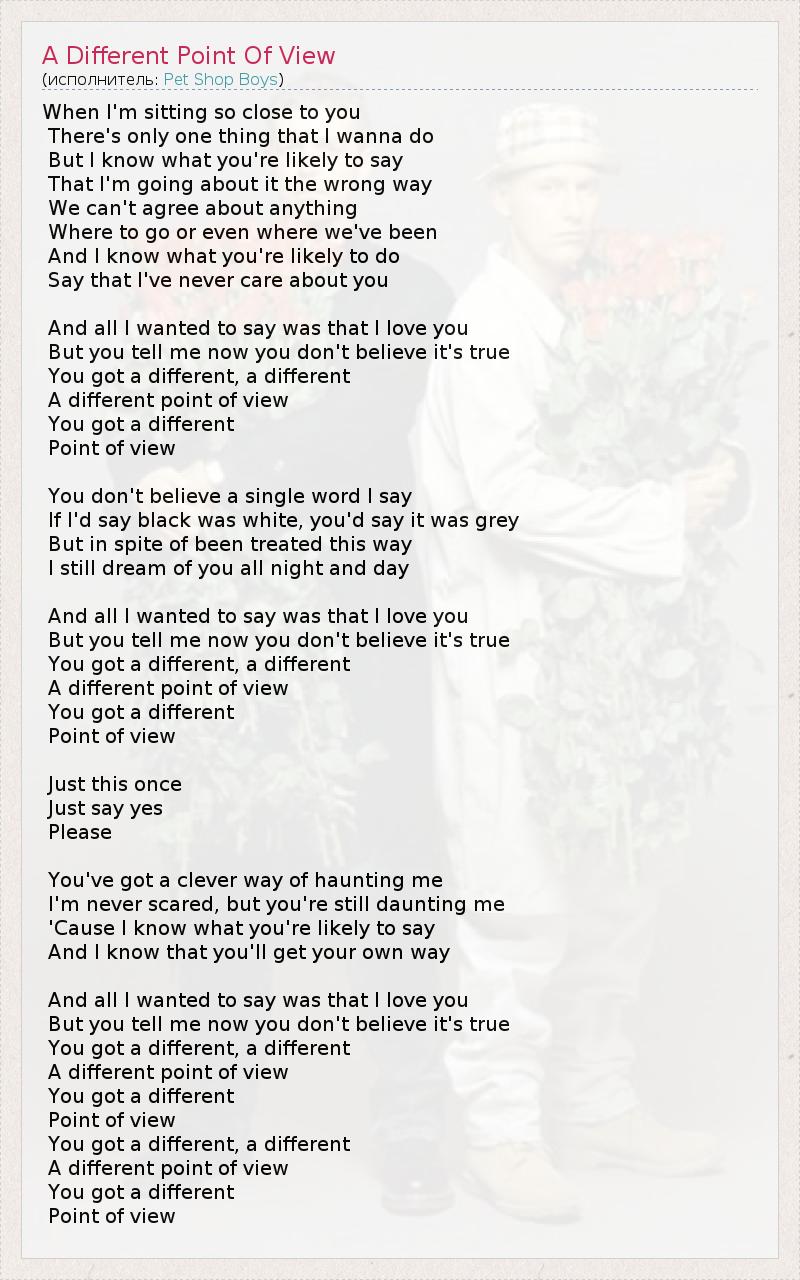 А как ты думаешь, о чем песня "A Different Point Of View" ?
