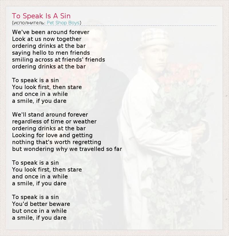 А как ты думаешь, о чем песня "To Speak Is A Sin" ?