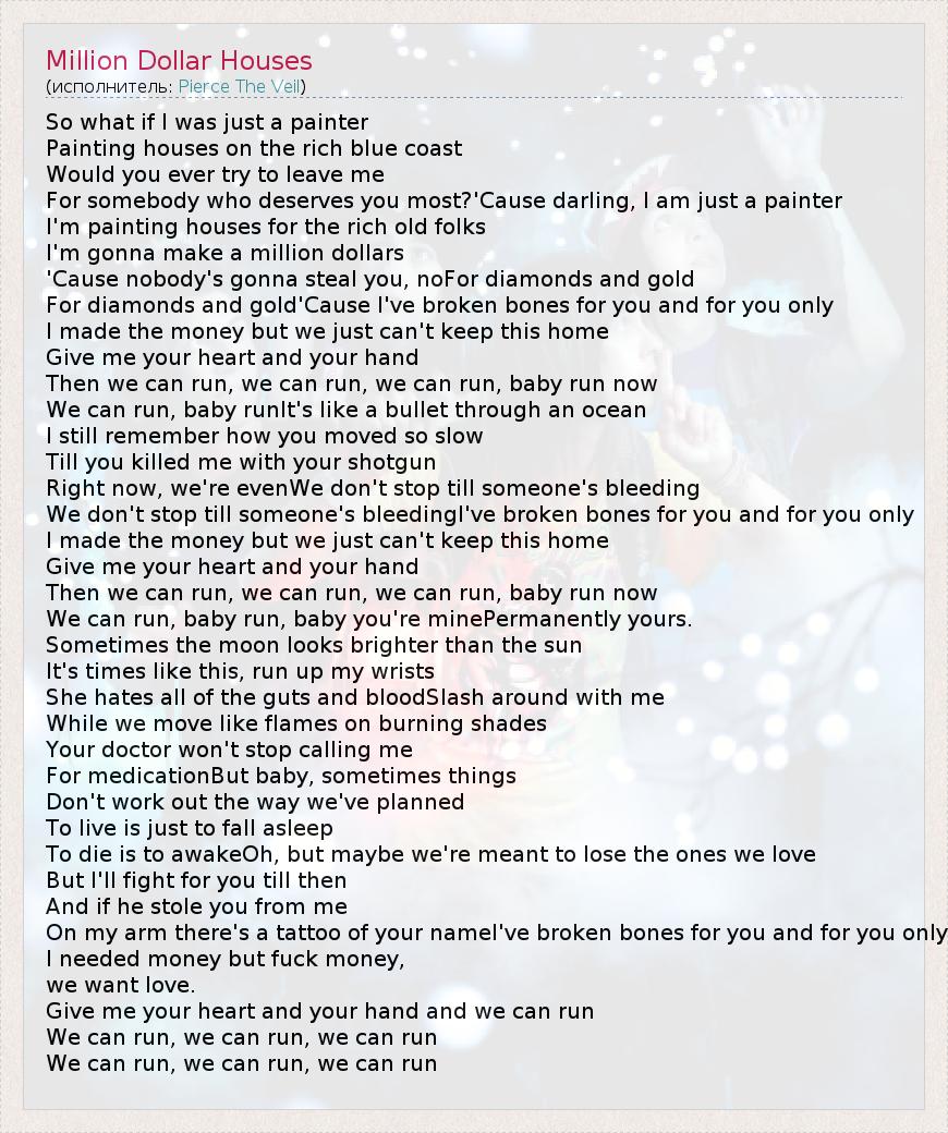 А как ты думаешь, о чем песня "Million Dollar Houses" ?
