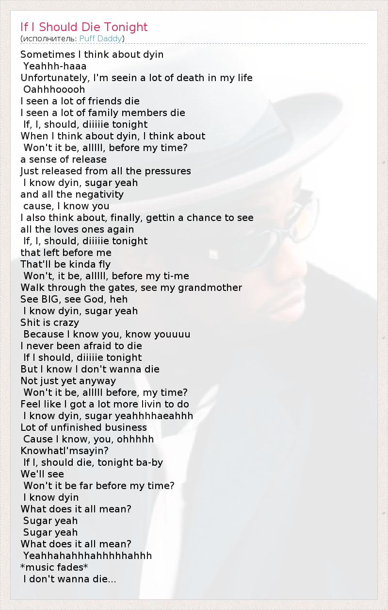 ГлавнаяИсполнителиPuff DaddyIf I Should Die Tonight
