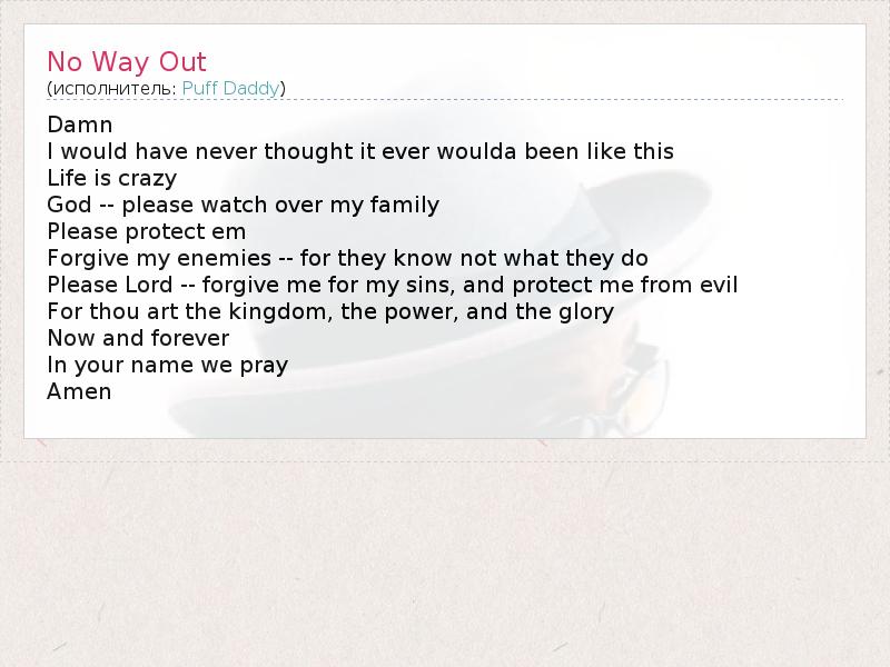 А как ты думаешь, о чем песня "No Way Out" ?